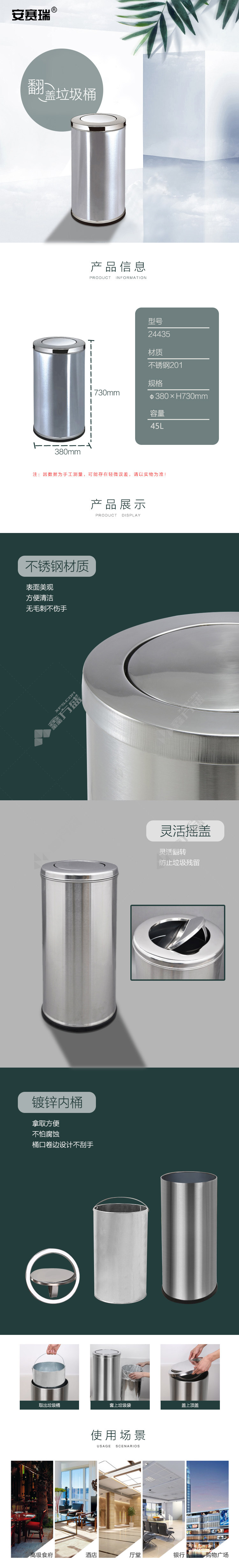 ansery 24435 stainless steel flip-top trash can 24435 38 *73cm medium size no specifications