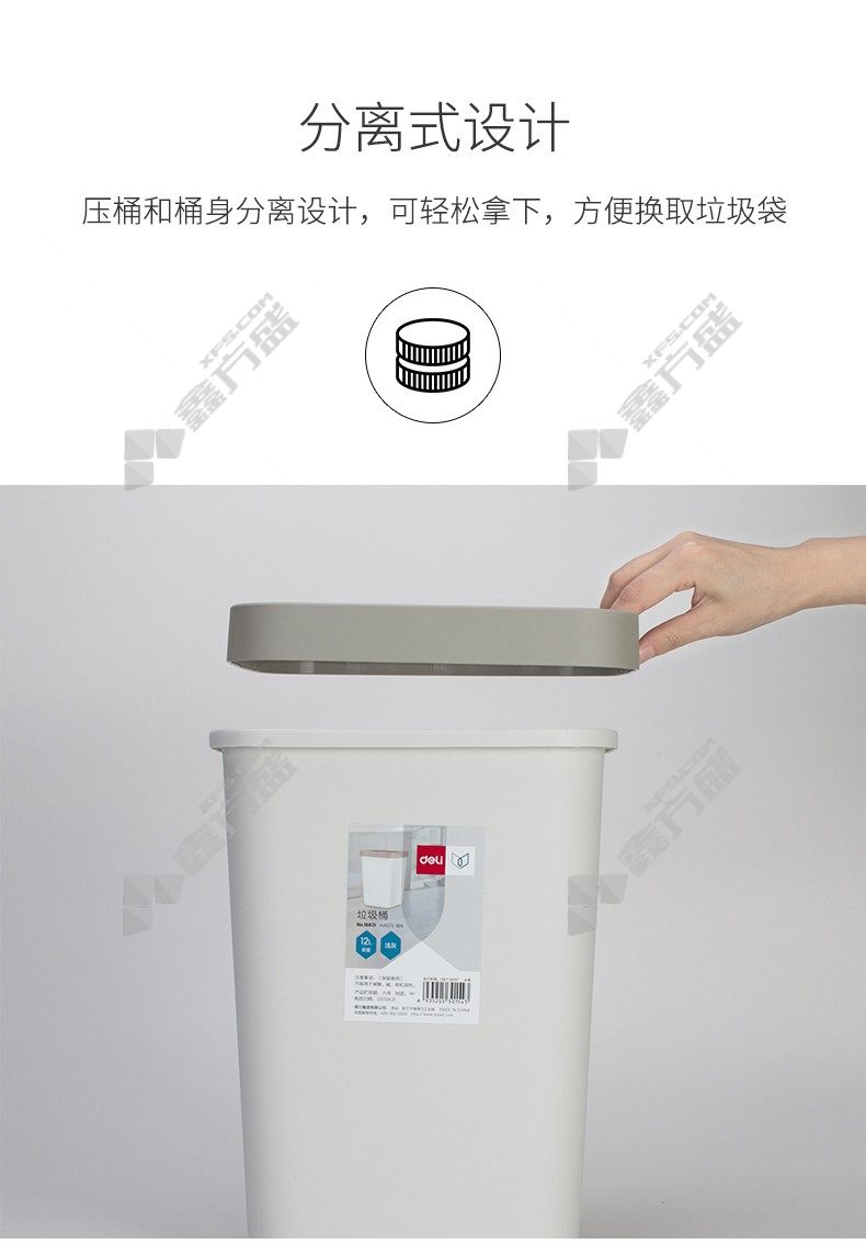 deli trash can 18821 square open 12 L light gray no specifications