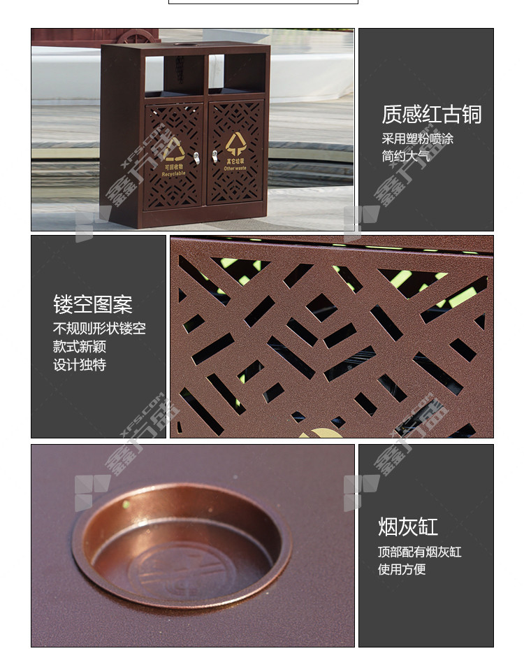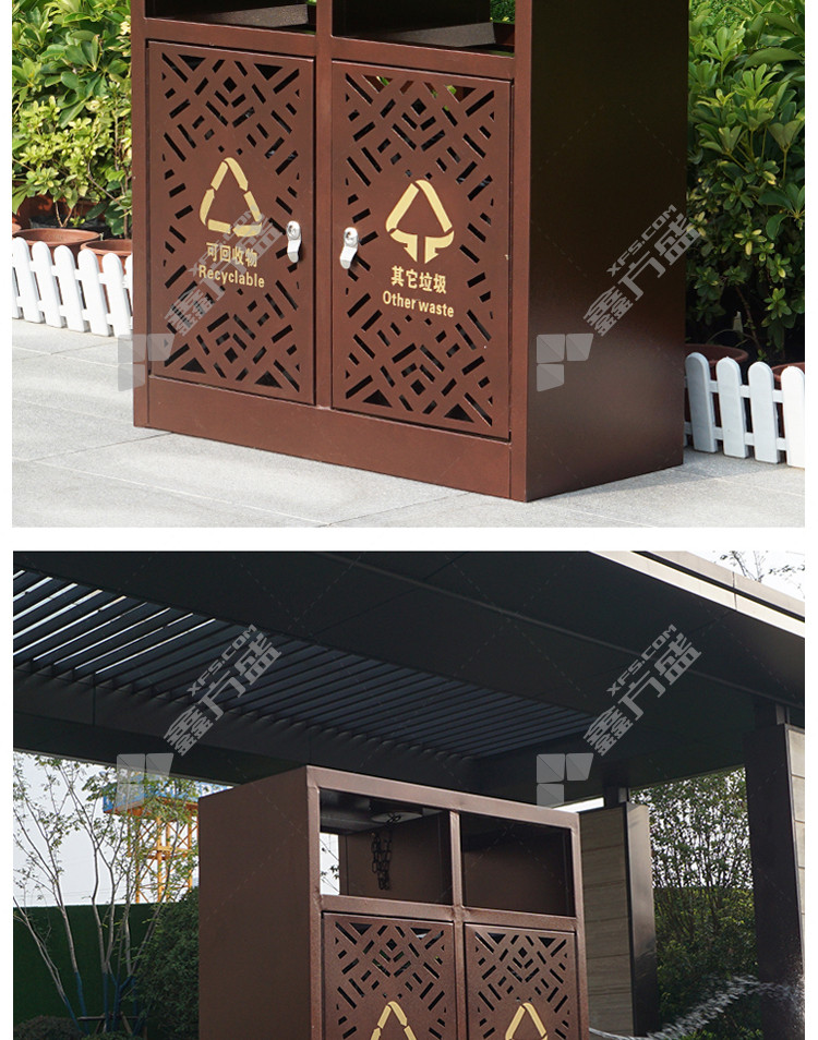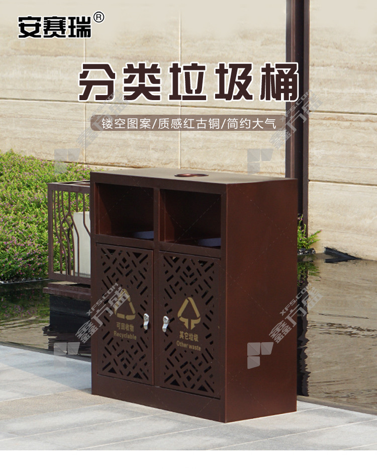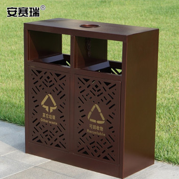 ansery 710224 double barrel steel and wood classification trash can 710224 brown 35 *78*86cm 60L no specifications