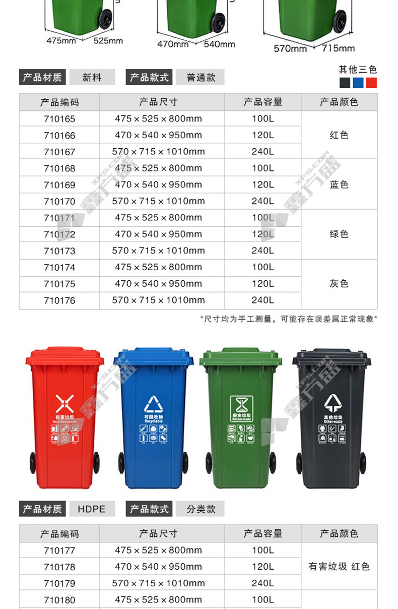 ansery 710165 property sanitation plastic wheeled trash can with lid 710165 red ordinary model 475 *525*800mm 100L no specifications