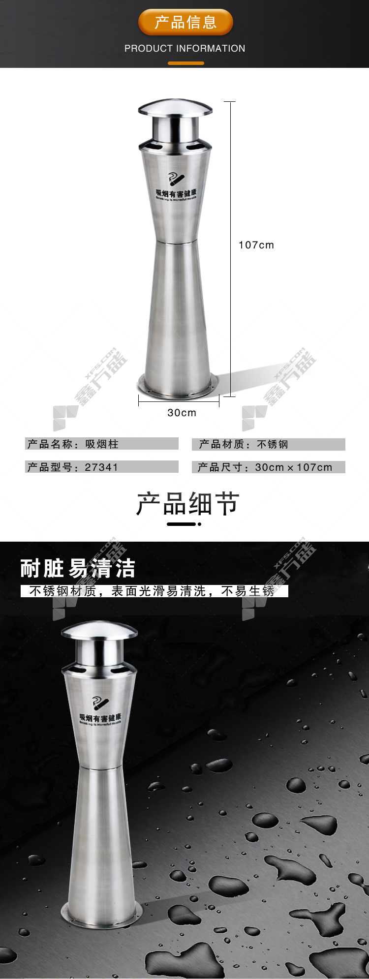 ansery 27341 stainless steel ash column 27341 30 *107cm stainless steel original color no specification