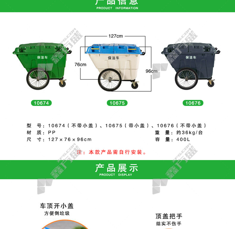 ansairui 10676 sanitation and cleaning garbage truck 10676 black without small cover 127 *76*96cm 400L no specifications