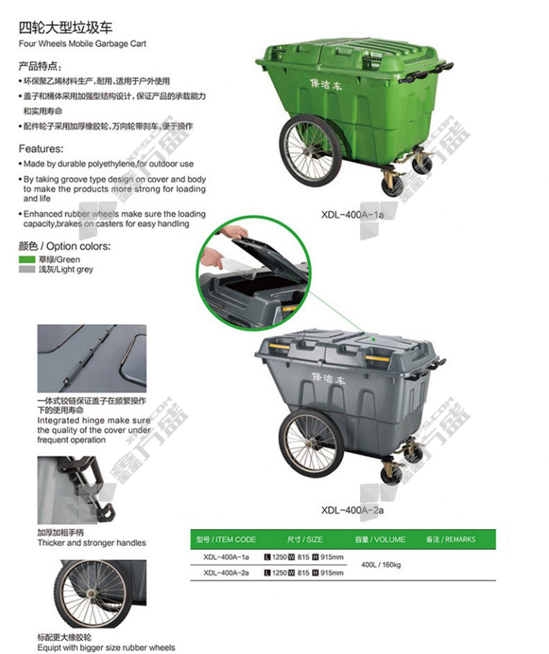 xinding four-wheel garbage truck XDL-400A-1a food waste 400 L green XDL-400A-1a food waste /400L/green