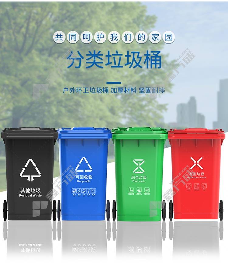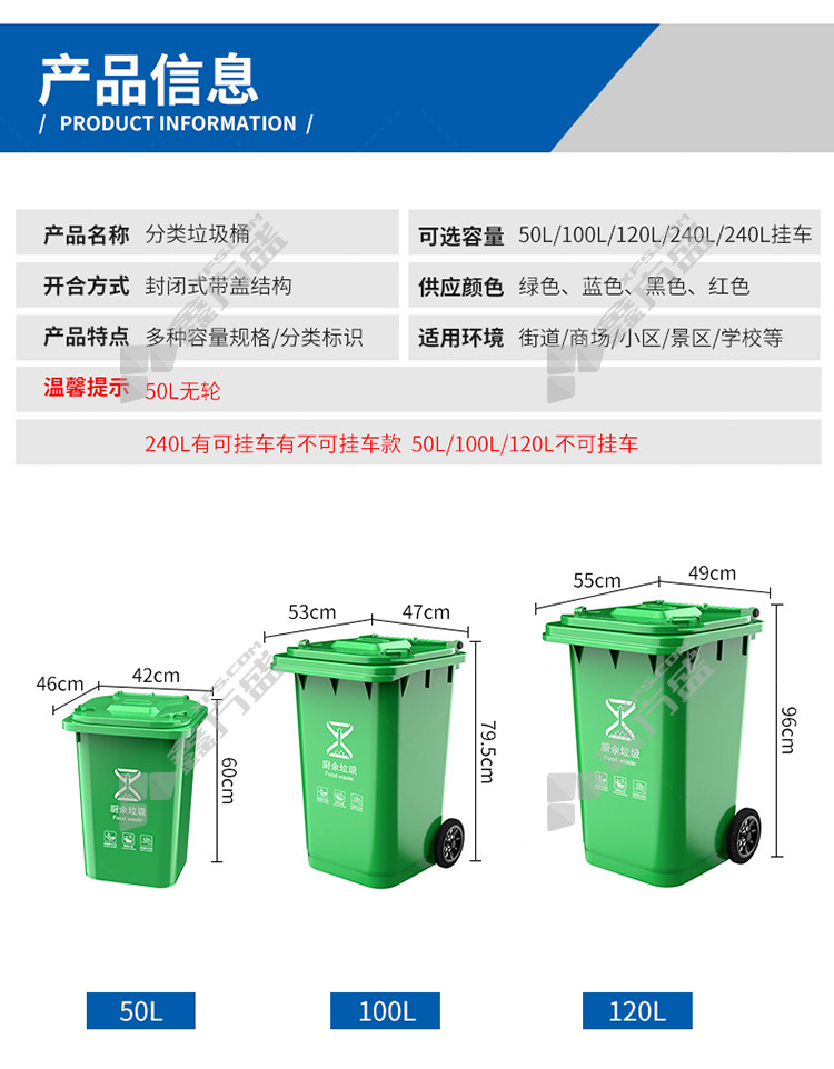 kelibang outdoor new national standard trailer classification trash can KB5103 large thickened 240L black KB5100 large thickened /240L/green