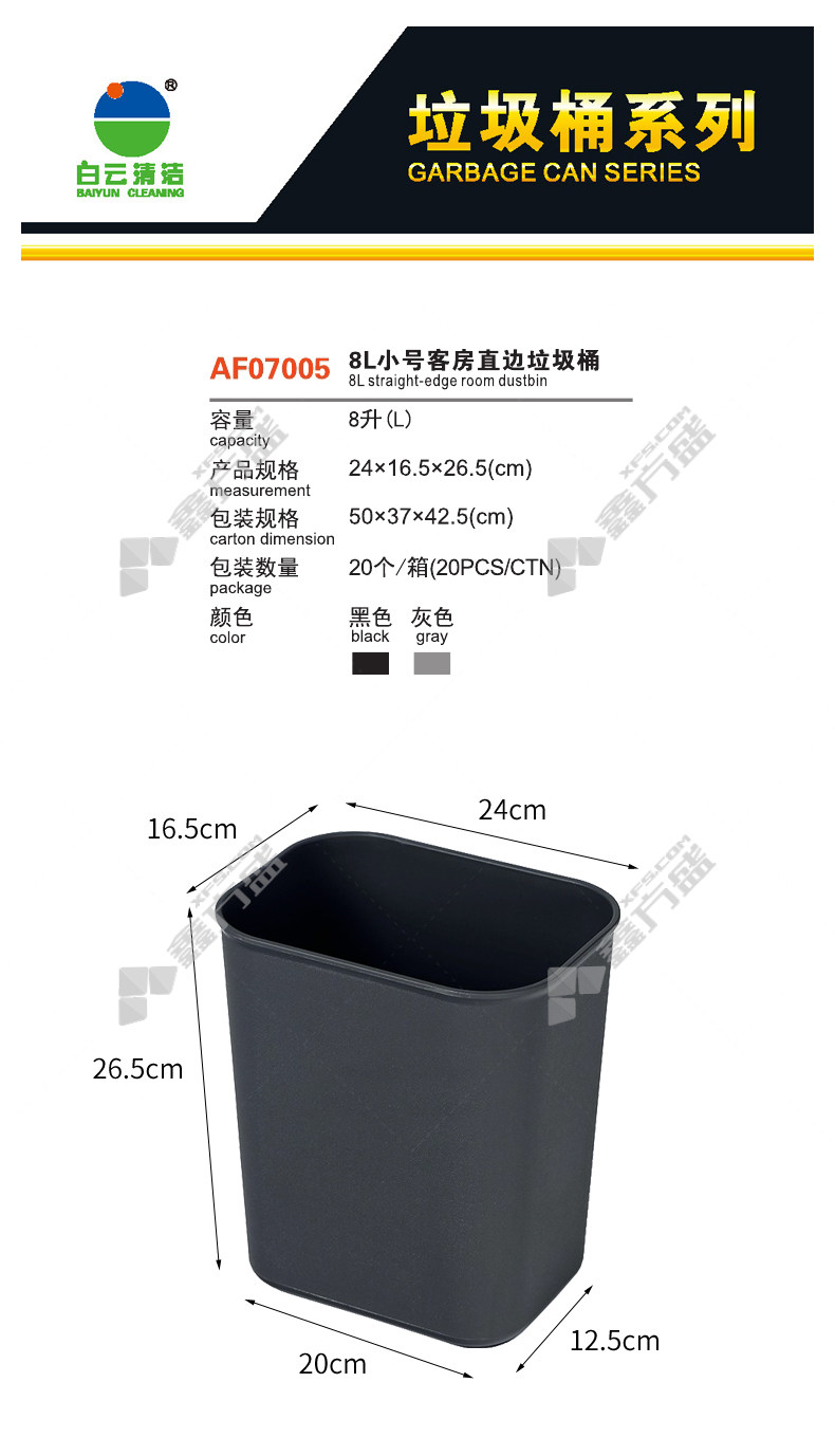 baiyun AF07005 trash can 24 *16.5*26.5cm 8L black 24*16.5*26.5cm/8L/black