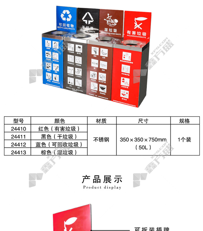 ansery 24410 stainless steel four-category trash can 24410 35 *35*75cm 50L red 1 pack no specifications