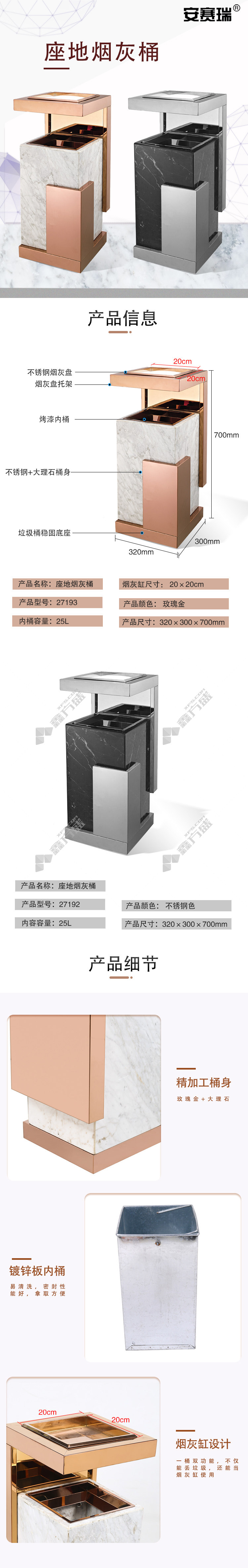 ansery 27193 stainless steel trash can 27193 32 *30*70cm 25L rose gold no specification