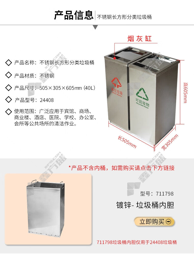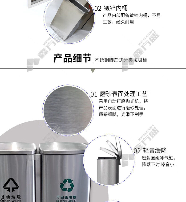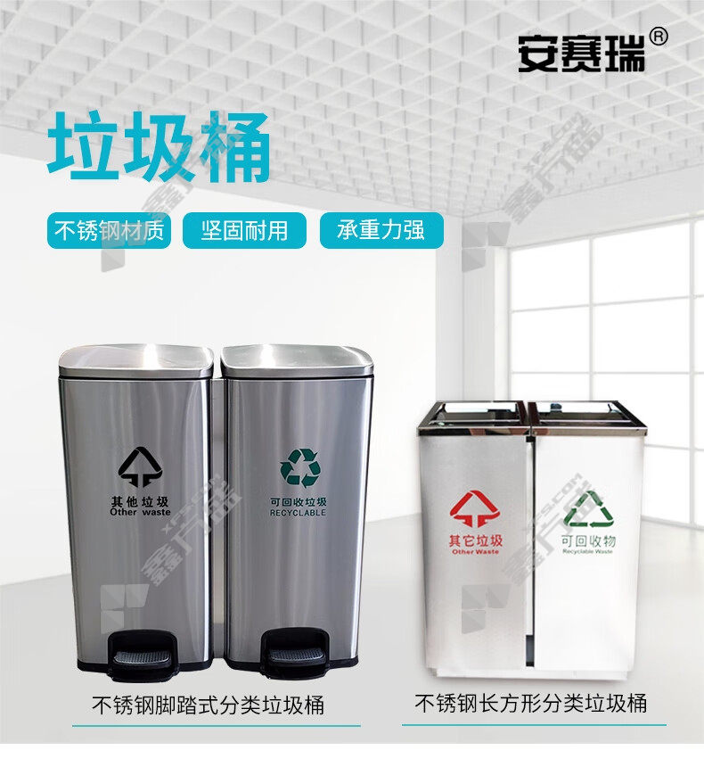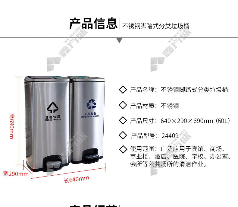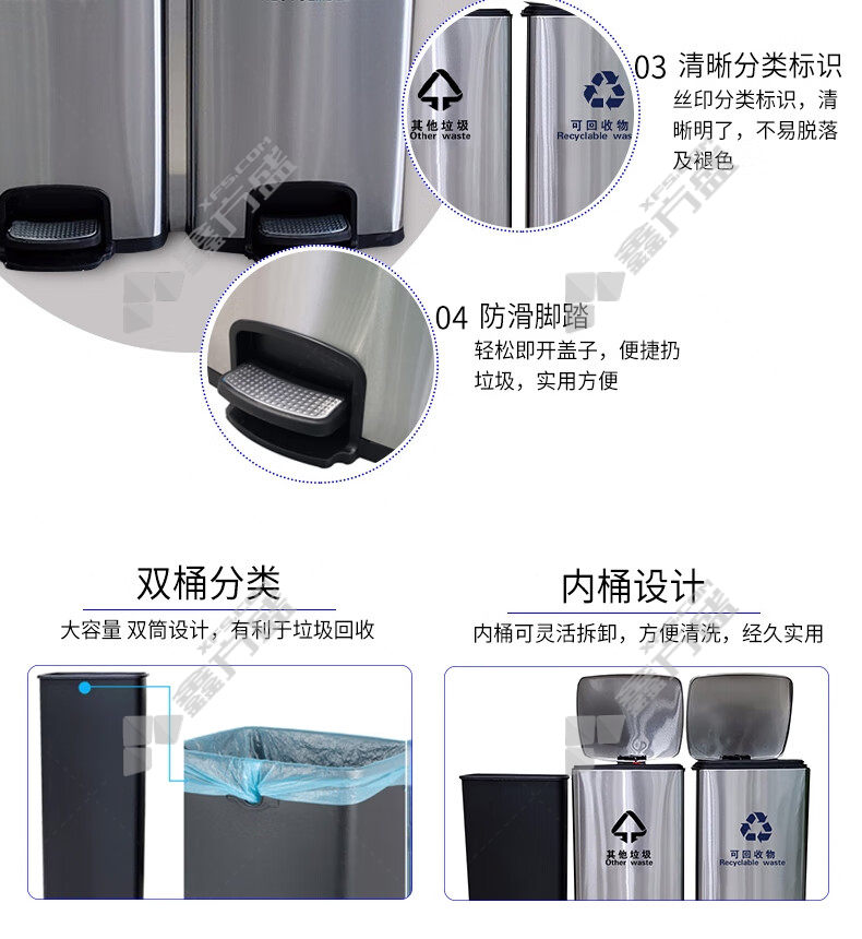 ansery 24409 stainless steel classified foot-operated trash can 24409 64 *29*60cm 60L true color without specifications