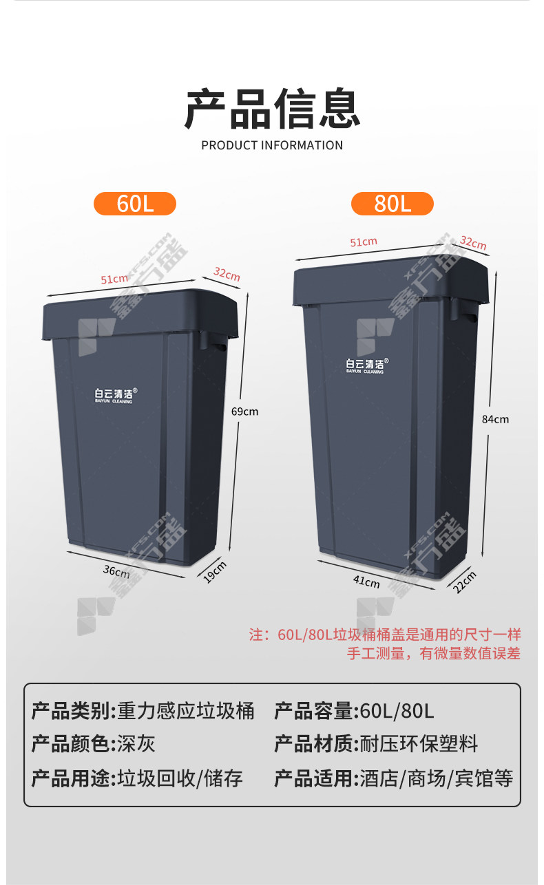 baiyun AF07334-60L garbage can AF07334 gray 60 L no specifications