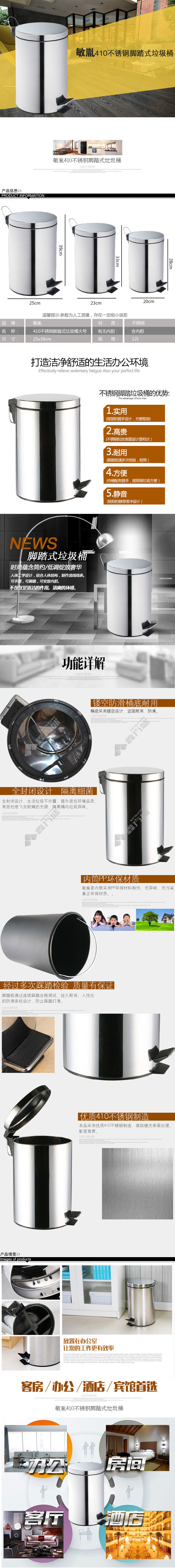 min yin L2012 stainless steel foot-operated trash can 12 L large size no specifications
