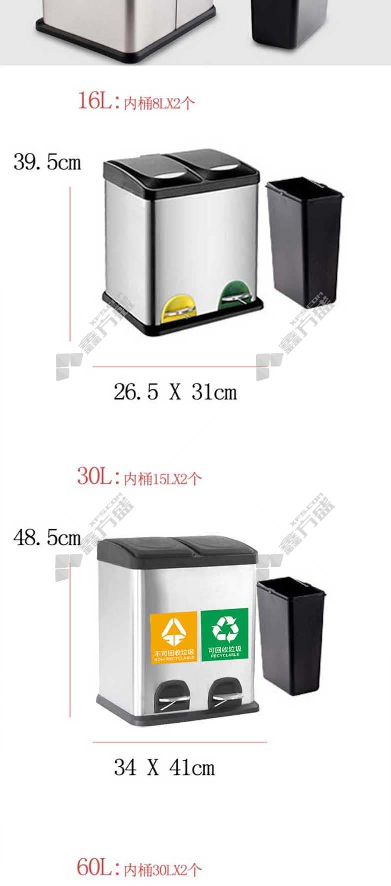 min yin L2160 stainless steel foot-operated double-type classification trash can (send classification tags) 330 *590*665mm/30L*2/60L silver no specification
