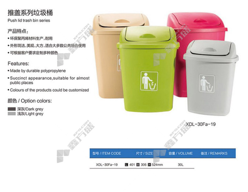 huyang high quality square push lid indoor trash can 30 L recyclable 420 *330*590mm 30L blue no specification