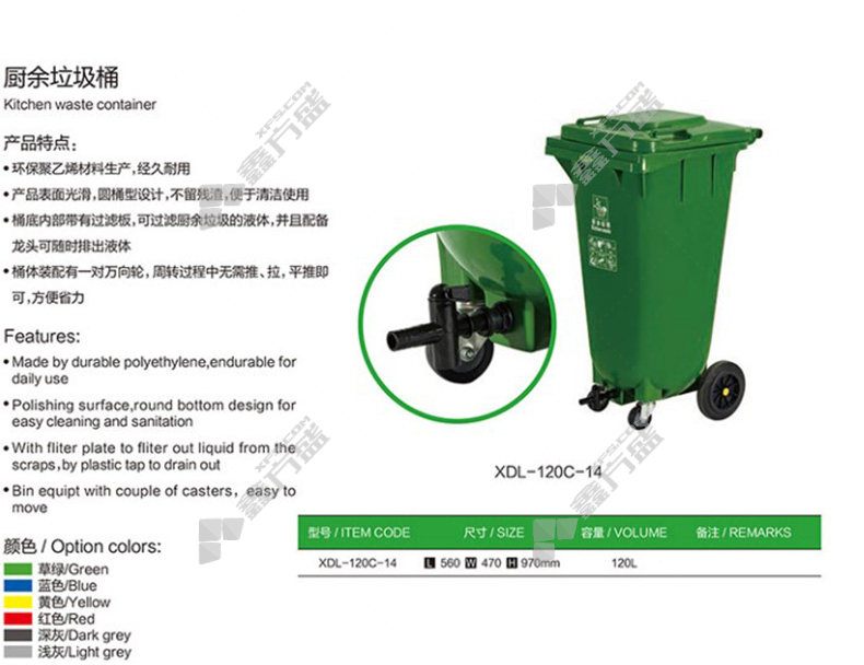 xinding four-wheel drain outdoor trash can XDL-120C-14 food waste 120 L green XDL-120C-14 food waste /120L/green