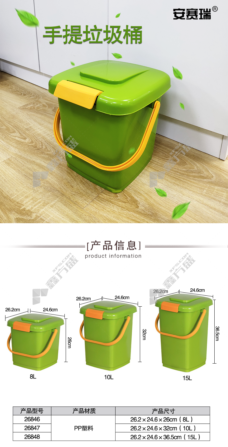 ansery 26848 portable trash can 26848 green 26.2 *24.6*36.5cm 12L no specifications