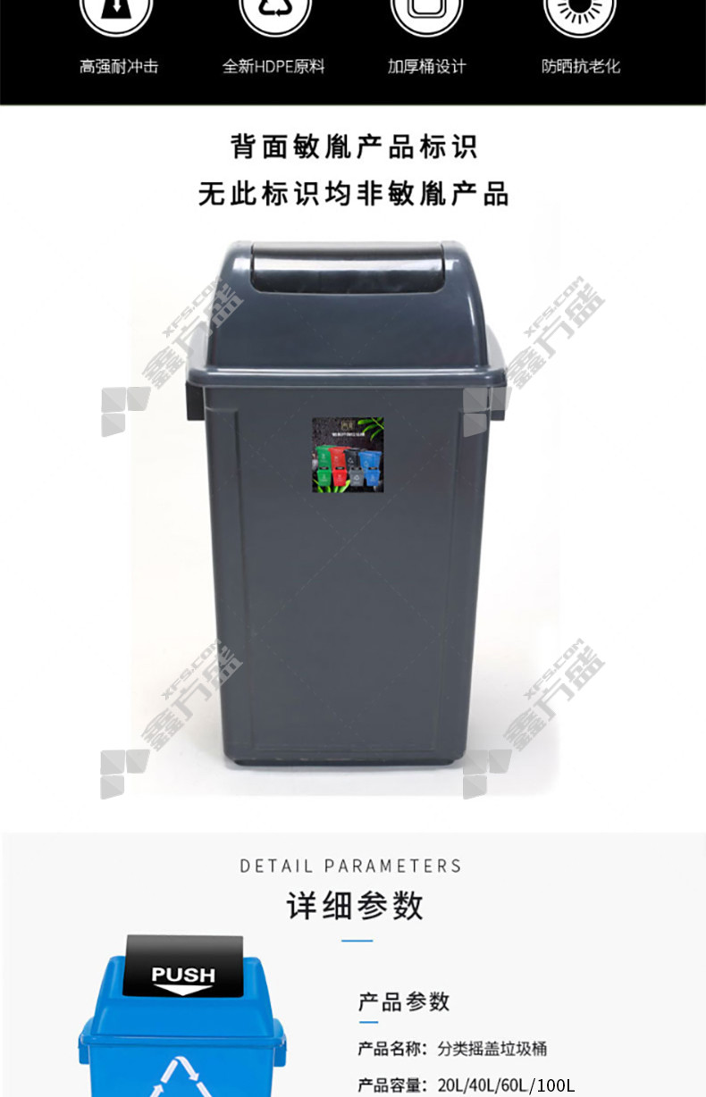min yin MYL-7100-22 swing lid toxic and hazardous label classification trash can 100 L red no specification