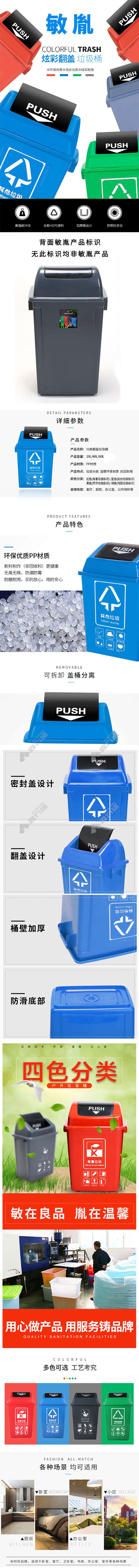 min yin MYL-7720-10 flip lid other garbage label classification trash can 20 L blue 20L/blue