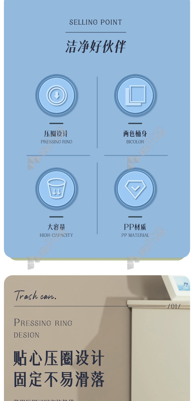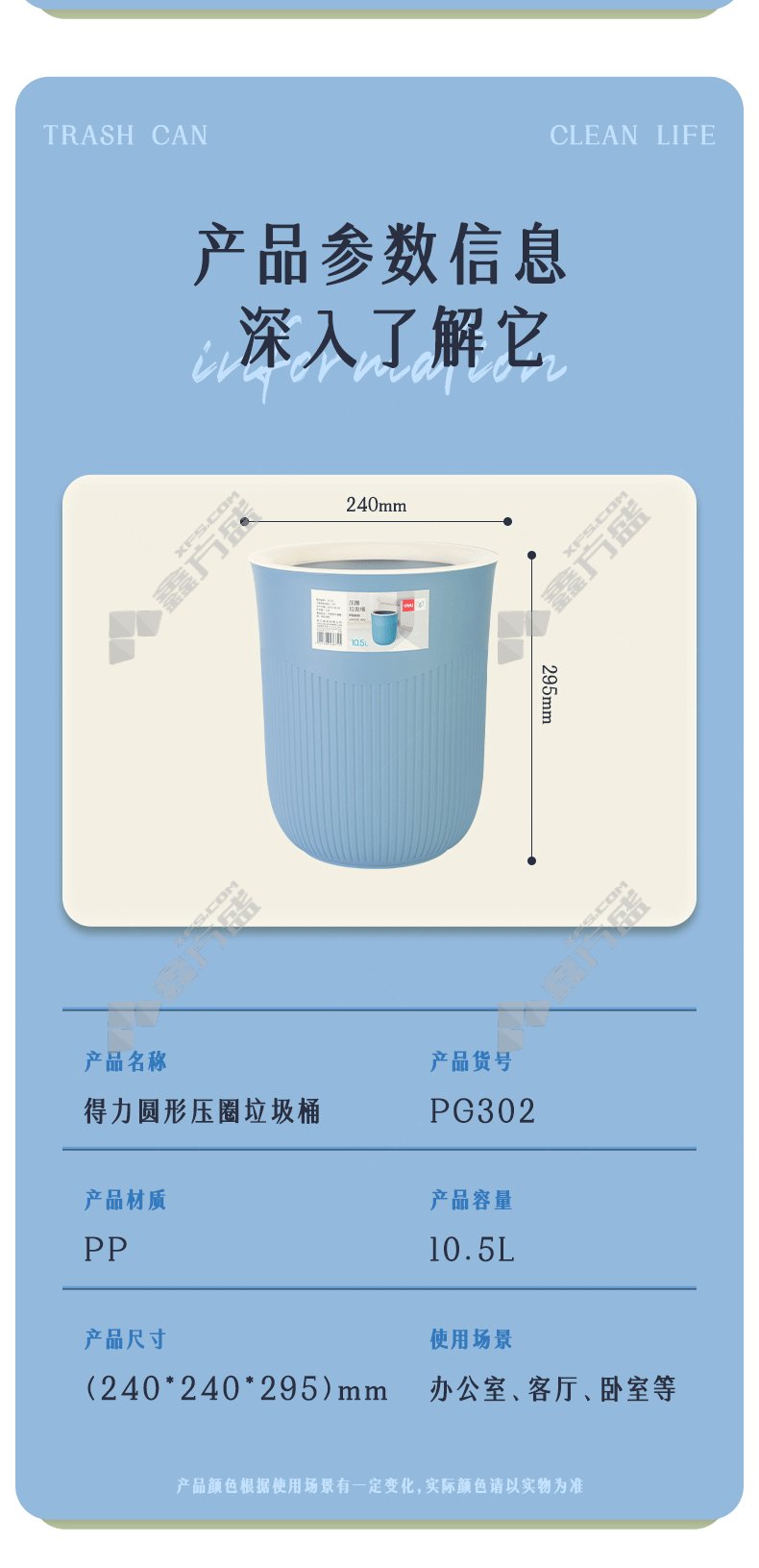 deli PG302 round press ring trash can PG302 10.5L 240*240*295mm blue PG302/10.5L/240*240*295mm/blue