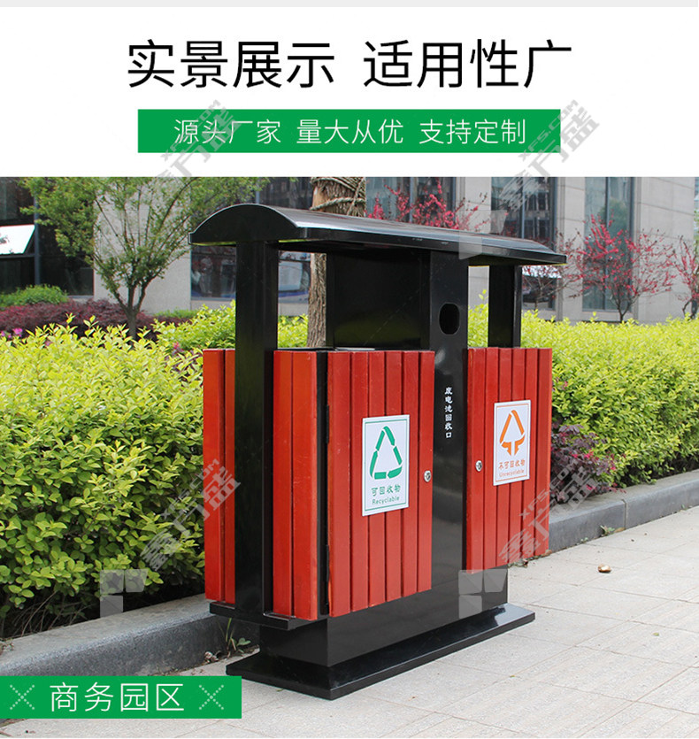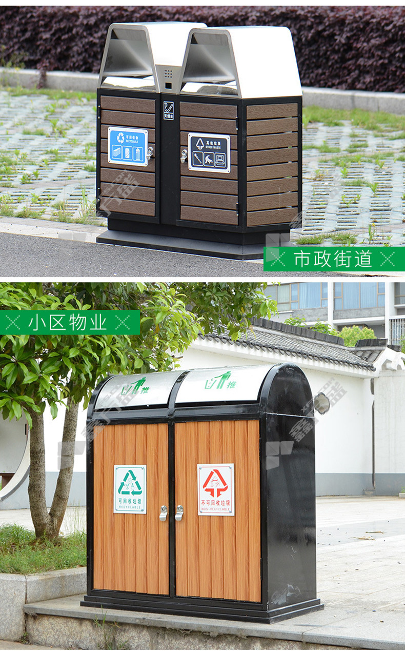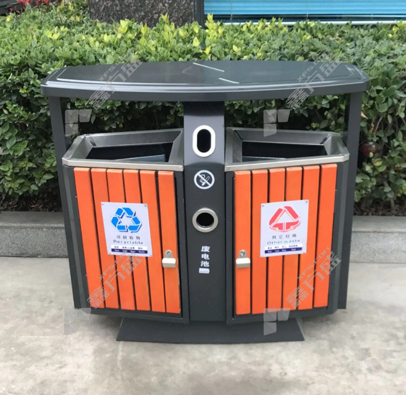 ZX-LJT-016 outdoor double classification steel and wood trash can ZX-LJT-016 60L 98*38*98cm black and orange color matching no specifications