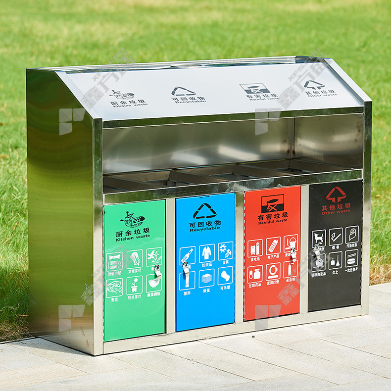 ZX-LJT-007 outdoor stainless steel trash can ZX-LJT-007 90L 120*36*100cm stainless steel color no specification
