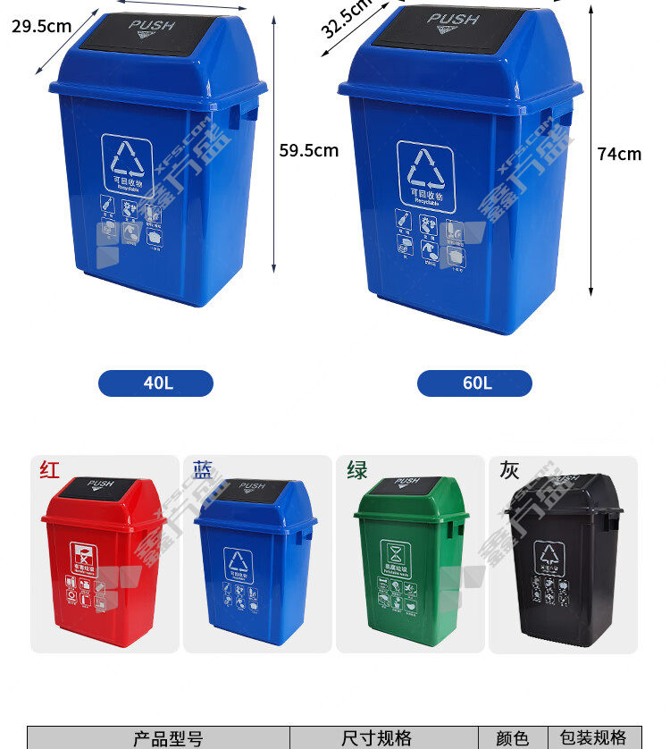 ansery 24359 plastic swing lid garbage classification trash can 24359 red 40 L no specifications