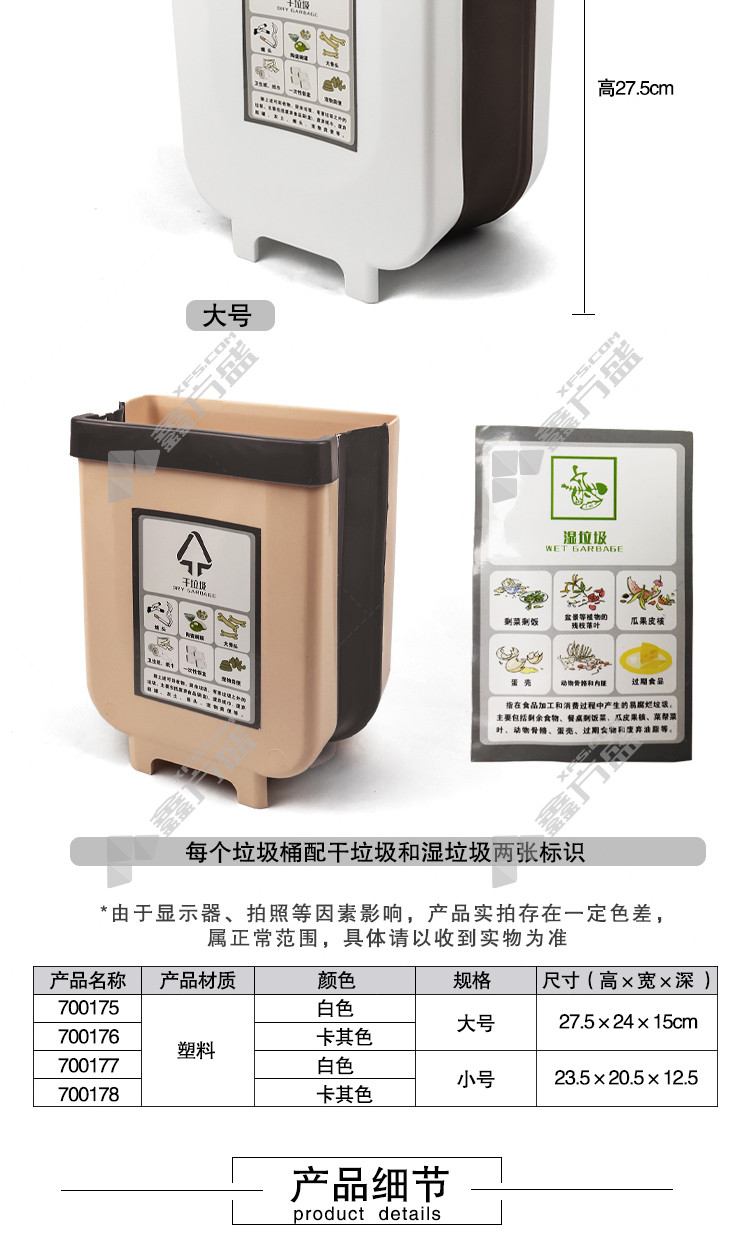 ansery 700178 folding wall-mounted trash can 700178 khaki small size 23.5 *20.5*12.5 no specifications