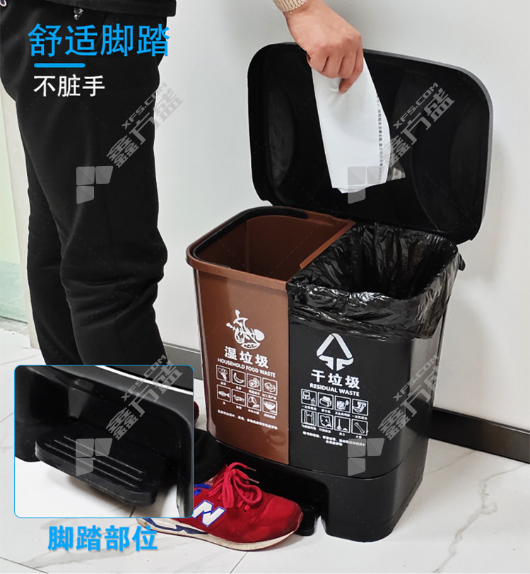 ansery 27336 double bucket classification trash can 27336 black plus brown 508 *383*567mm 60L 27336/black plus brown /508*383*567mm 60L