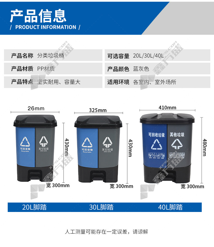keliban classified trash can with thickened flip cover KB1012 40L blue gray no specification