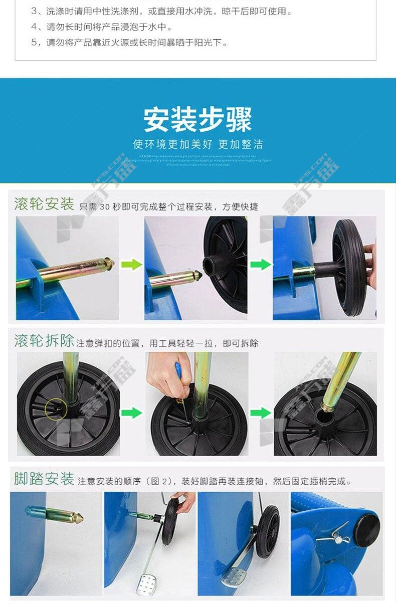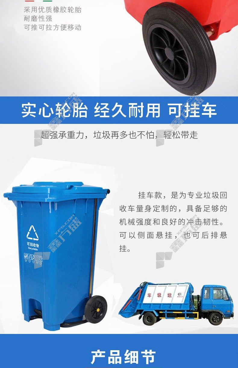 min yin MYL-7240-8 new national standard for pedal-operated outdoor recyclable sorting trash cans (trailer pulley with cover ) 240L blue no specification