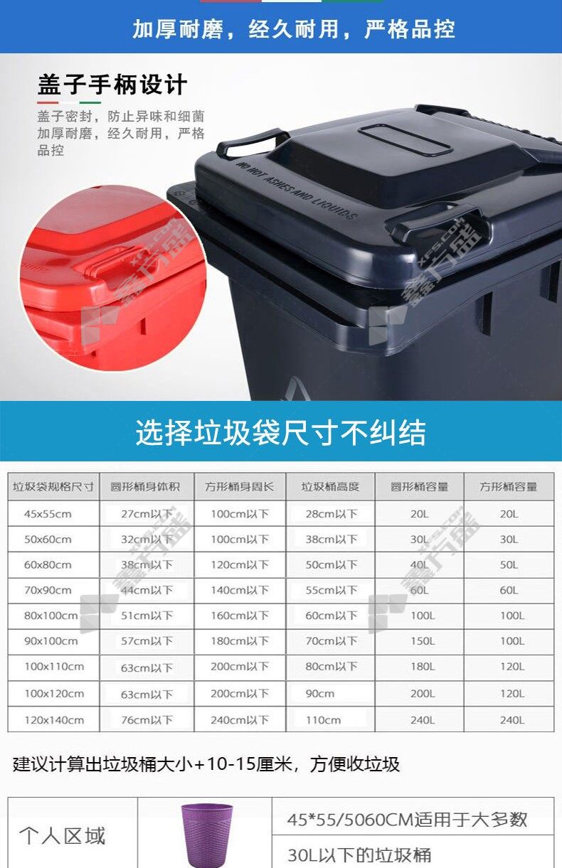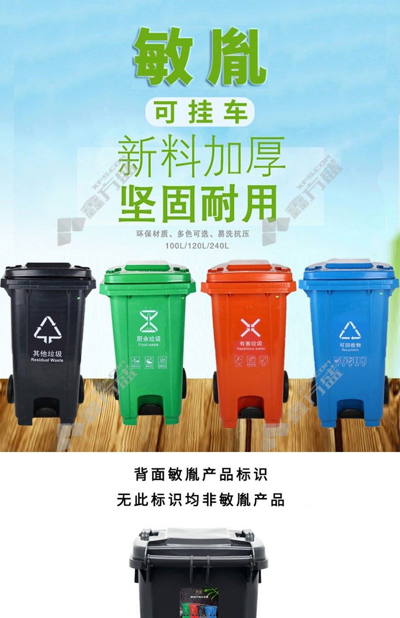 min yin MYL-7240—6B outdoor toxic and hazardous label classified trash can 240 L red no specification