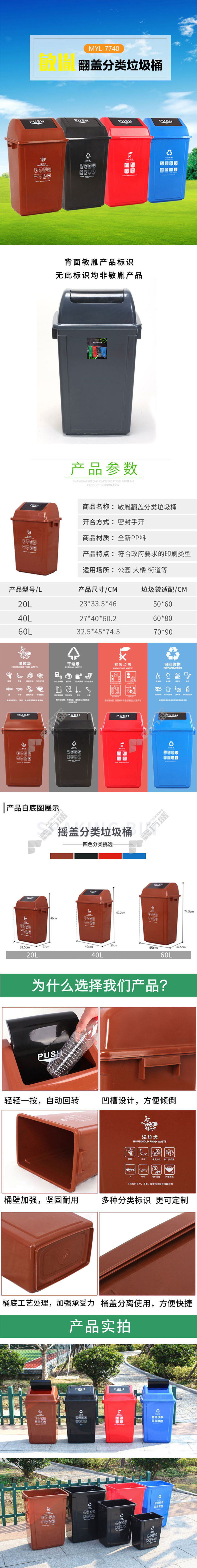 min yin MYL-7760-2 flip lid sorting trash can wet waste mark 60 L brown no specification
