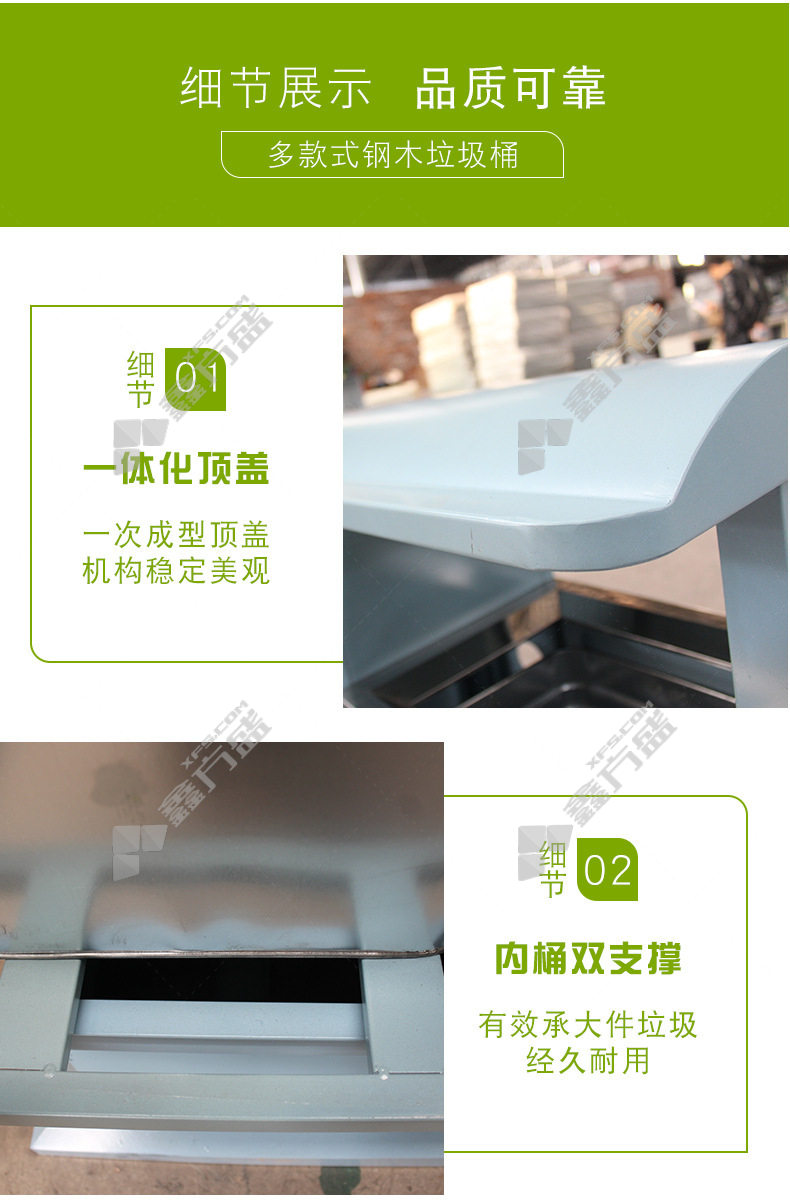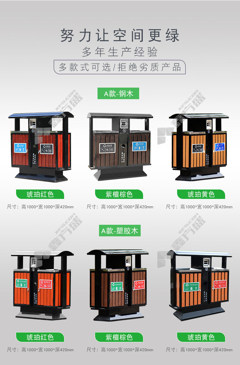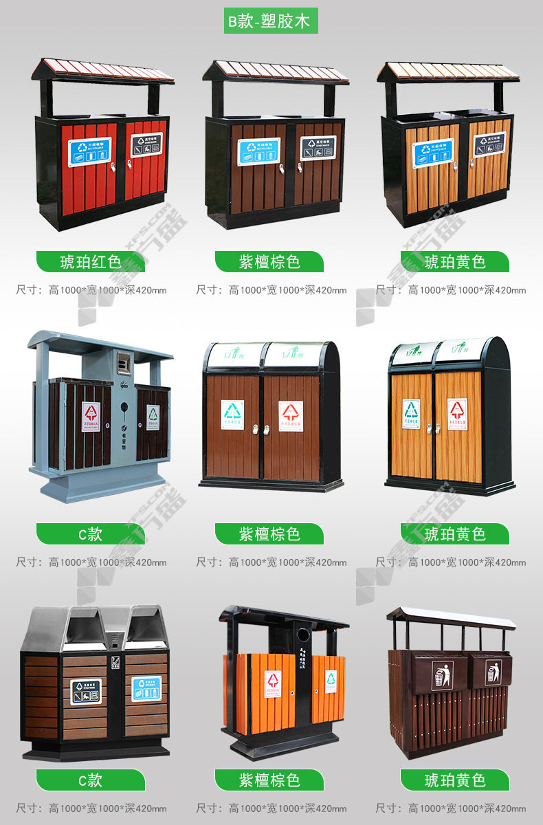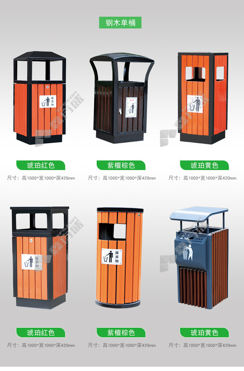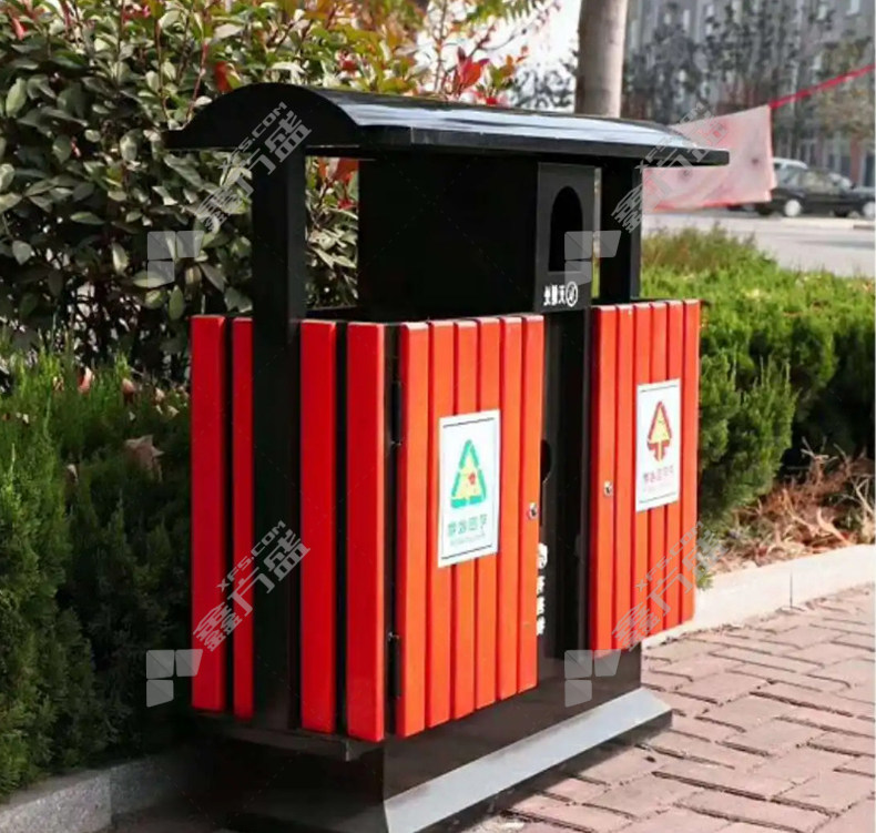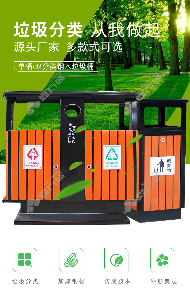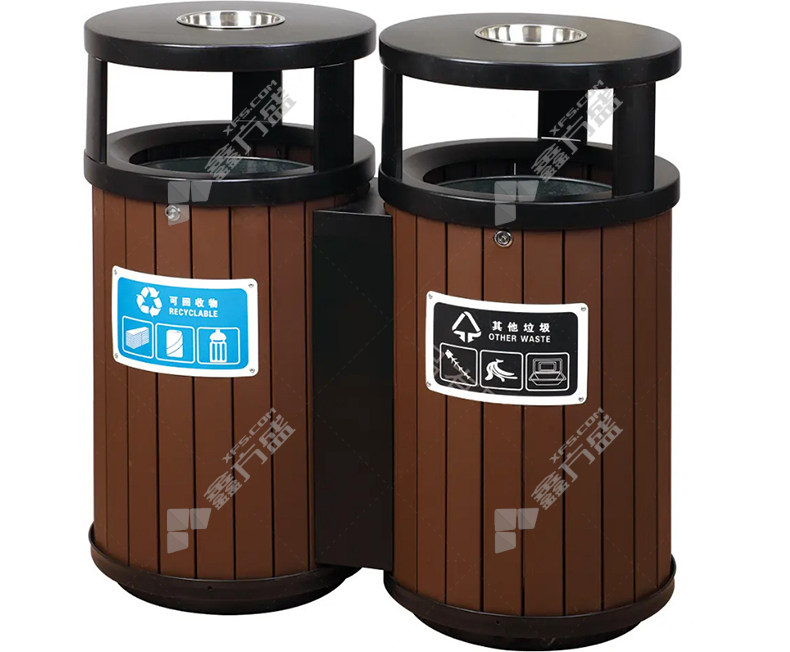 ZX-LJT-015 outdoor double classification steel and wood trash can ZX-LJT-015 60L 100*36*100cm black and brown color matching no specifications
