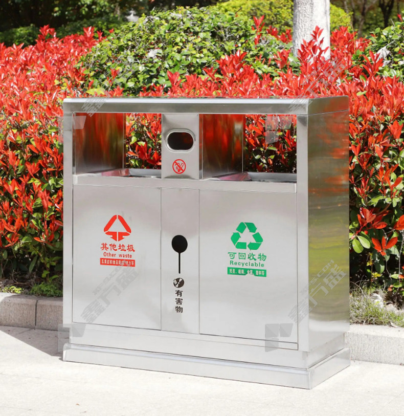 ZX-LJT-008 outdoor stainless steel trash can ZX-LJT-008 90L 120*38*95cm stainless steel color no specification