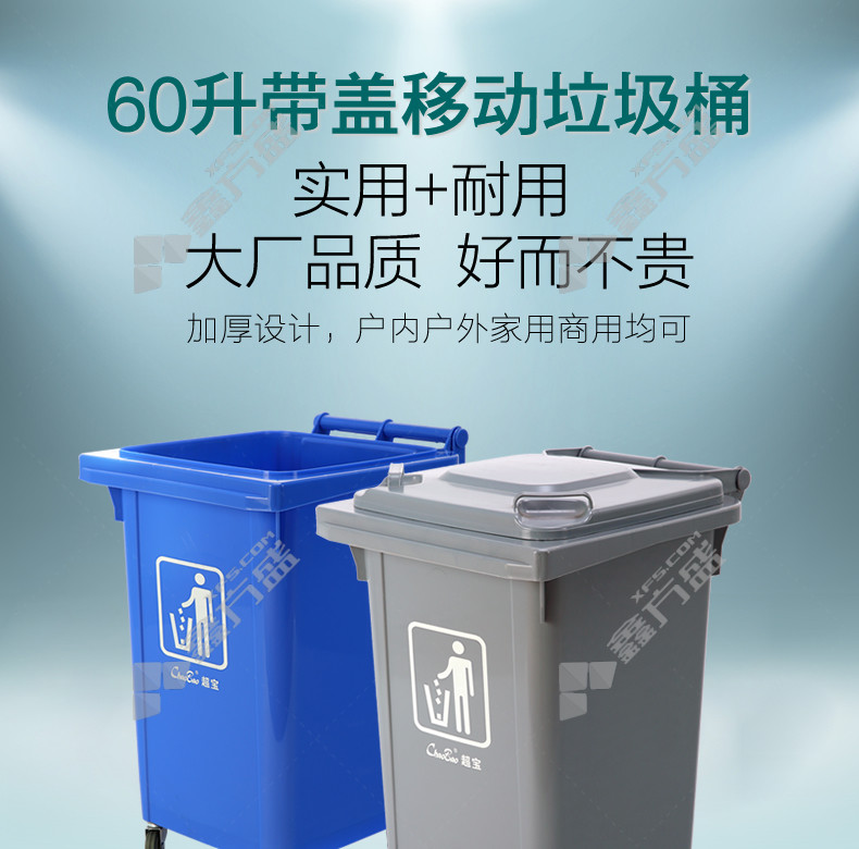 super treasure CHAOBAO four wheel mobile trash can B-001 B-001 60L blue B-001/60L/grey