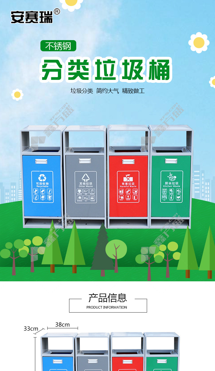ansery 710221 four-category outdoor trash can 710221 red 33 *38*92cm 30L no specifications