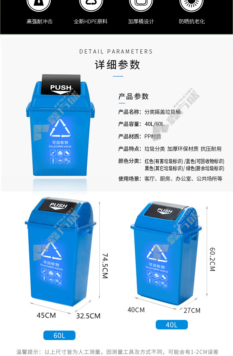 min yin MYL-7760-14 flip lid other garbage label classification trash can 60 L gray black no specification