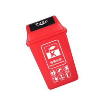 min yin MYL-7760-12 flip-top hazardous waste labeled classification trash can 60 L red no specification