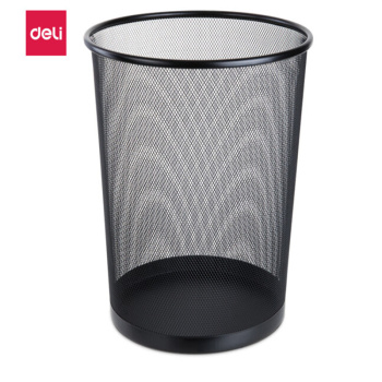 deli deli 29.5cm large metal mesh round paper basket 9189 one pack black no specifications