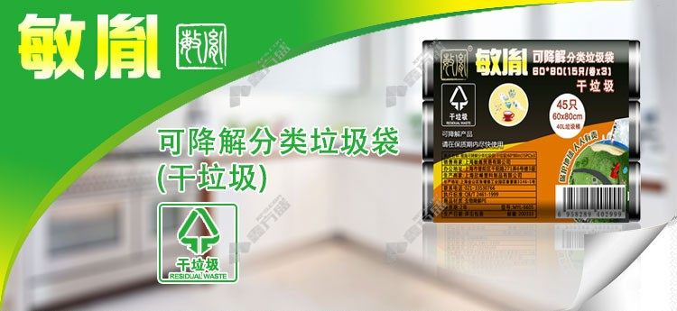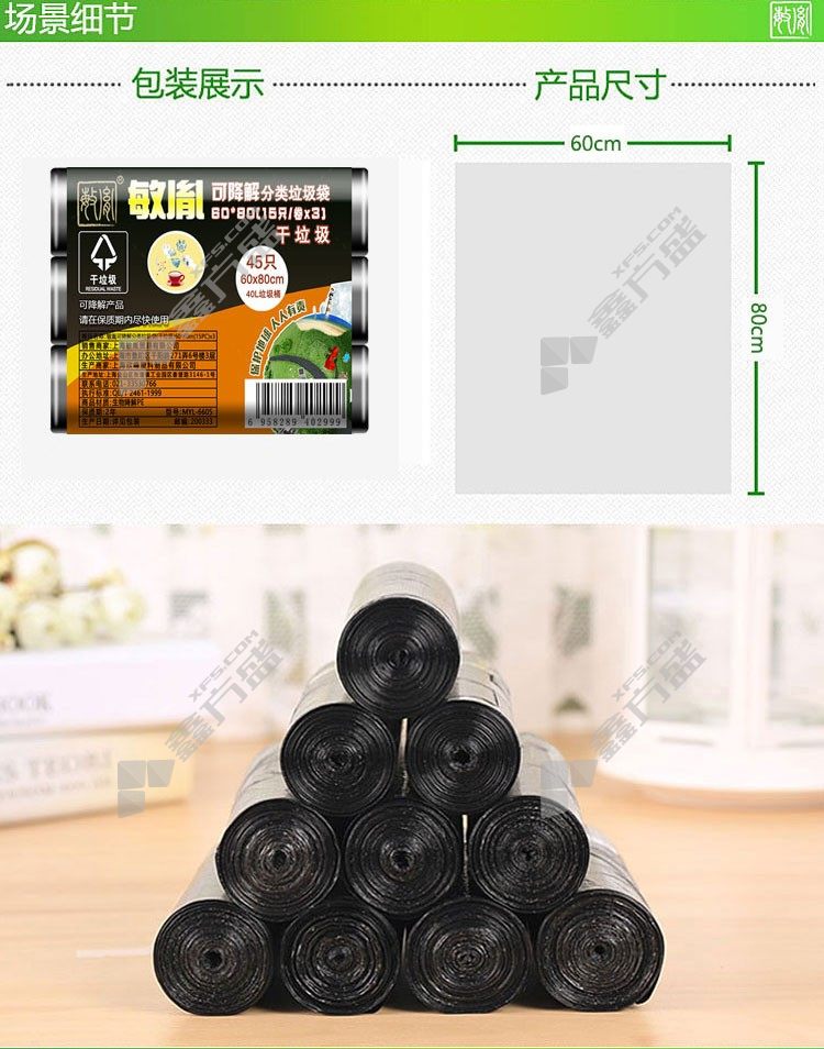 min yin MYL-6605 biodegradable classified garbage bag dry garbage 60 *80/15*3roll /group 5 /bag black no specification