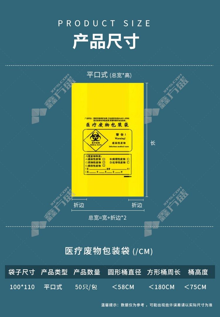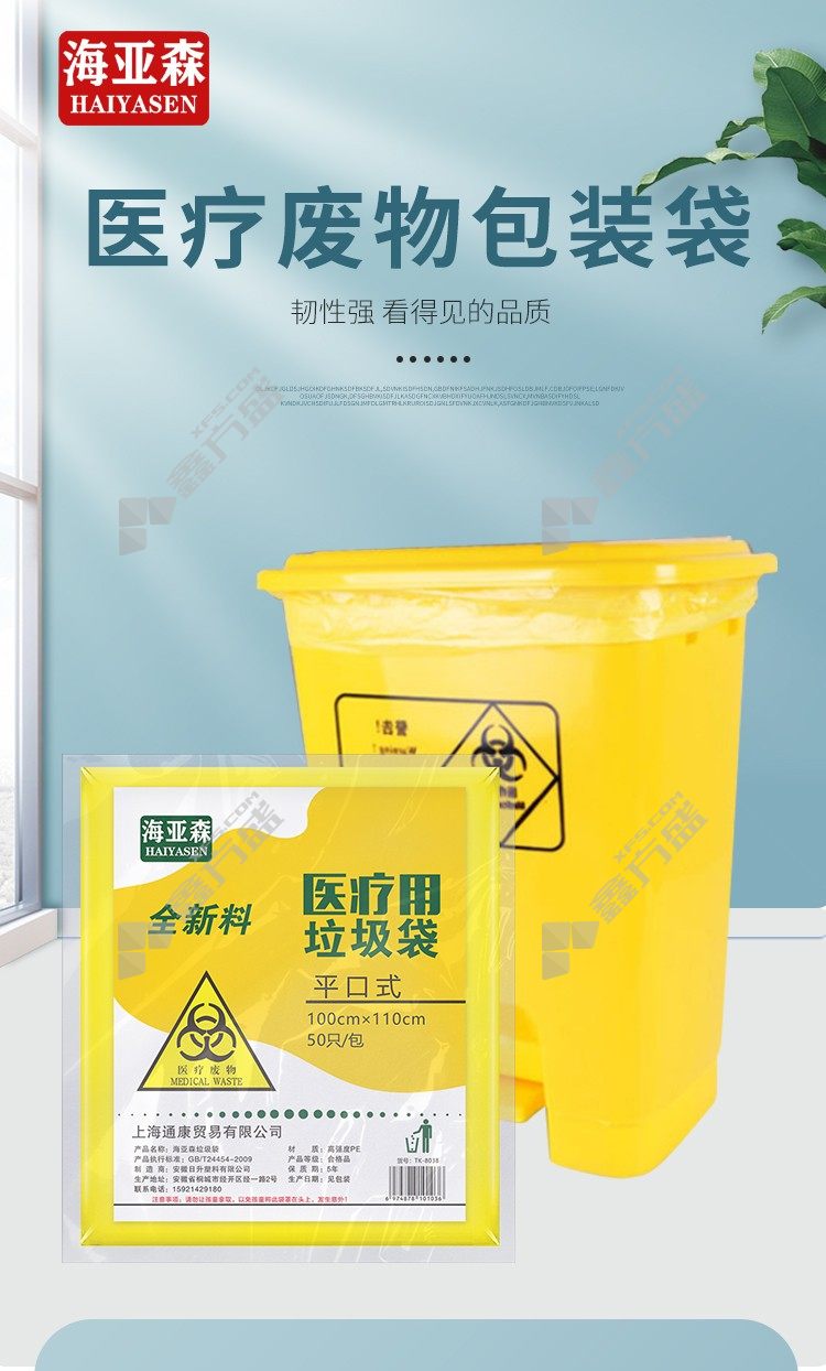 hyaasen TK-8038 flat mouth medical waste bag single side 2 s 50 only /pack of 10 /box of 100 cm*110cm yellow no specification