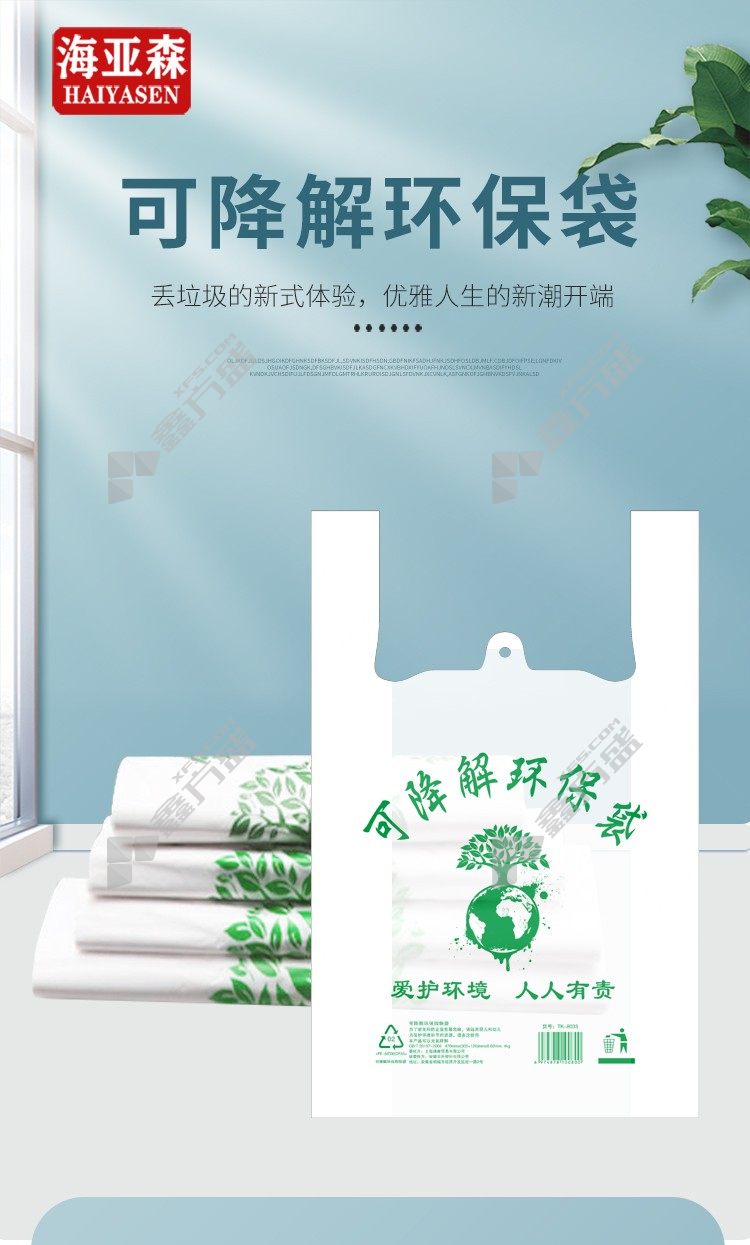 hyaasen TK-8033 biodegradable environmentally friendly bag single side 2 s 100 only /30 handfuls /box of 30 cm×47cm white no specification