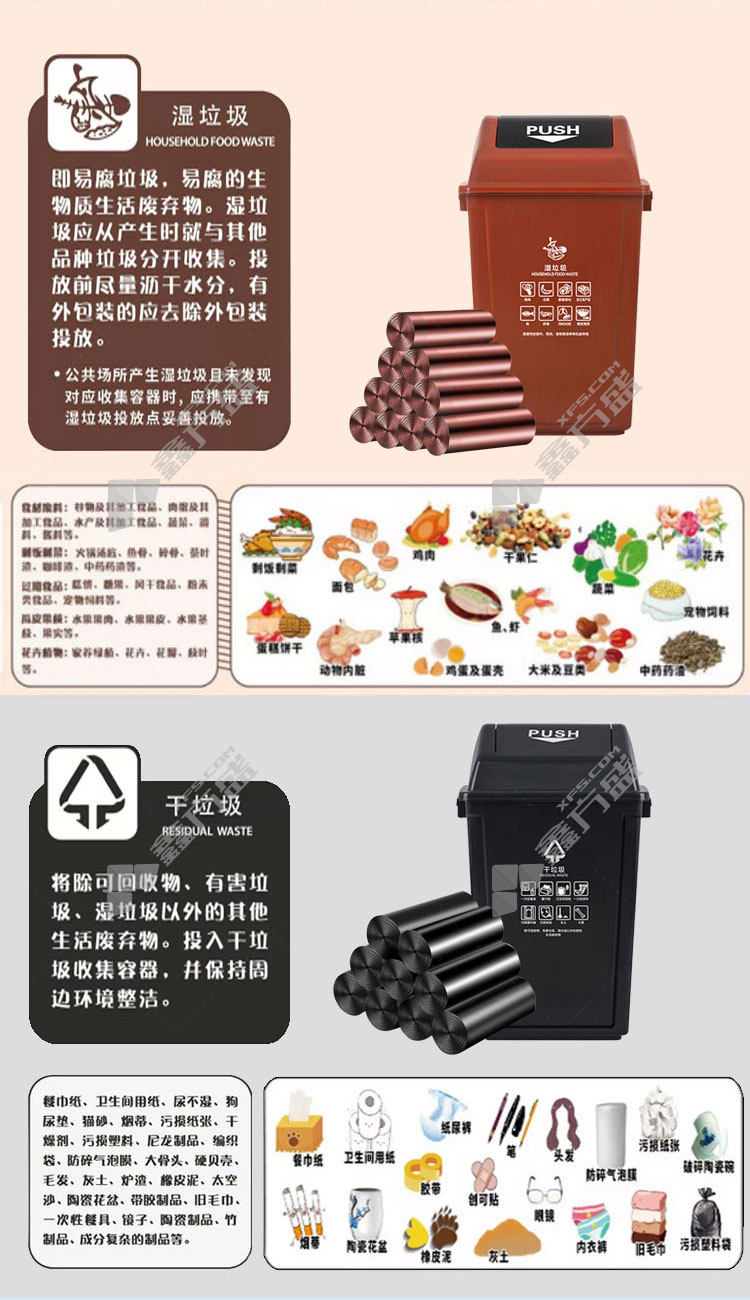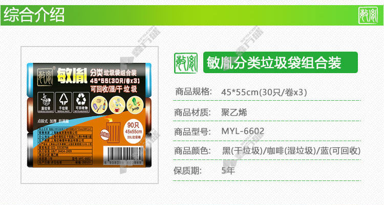 min yin MYL-6602 dry +wet +recyclable classified garbagebag 45*55cm 30* 3roll /pack of 5 /bag coffee 45 *55cm 30* 3roll /pack of 5 /bag /black
