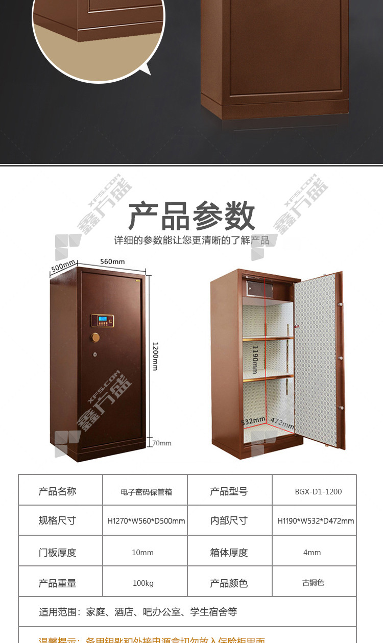 yongkanda BGX-D1-1200 electronic password safe H1270*W560*D500mm bronze no specification