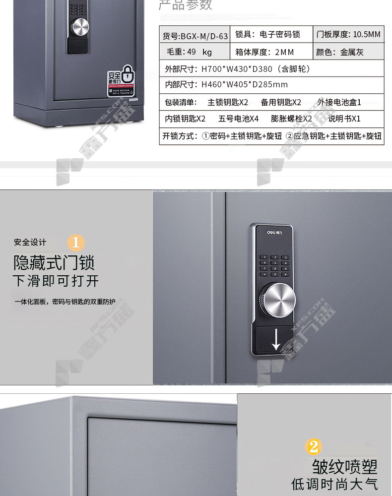 deli deli electronic password safe 3643 A 70*43*43cm height 48 cm light gray no specifications