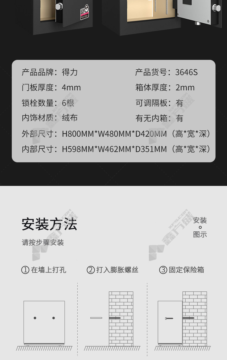 deli deli 3646S electronic password safe 3646 S H800 black no specification