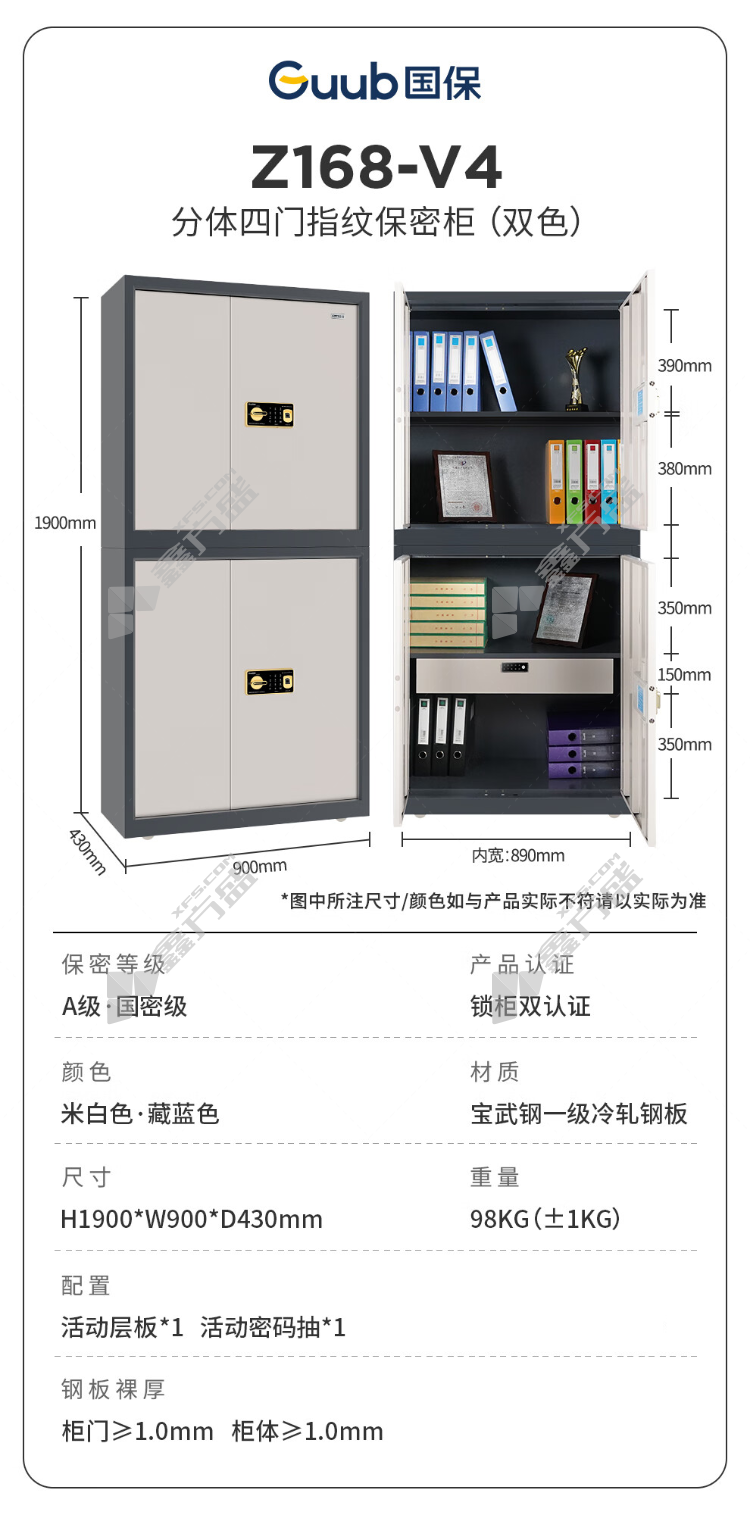 national security Z168-V4 A national secret-level fingerprint safe Z168-V4 H1900*W900*D430mm off white +navy blue no specifications