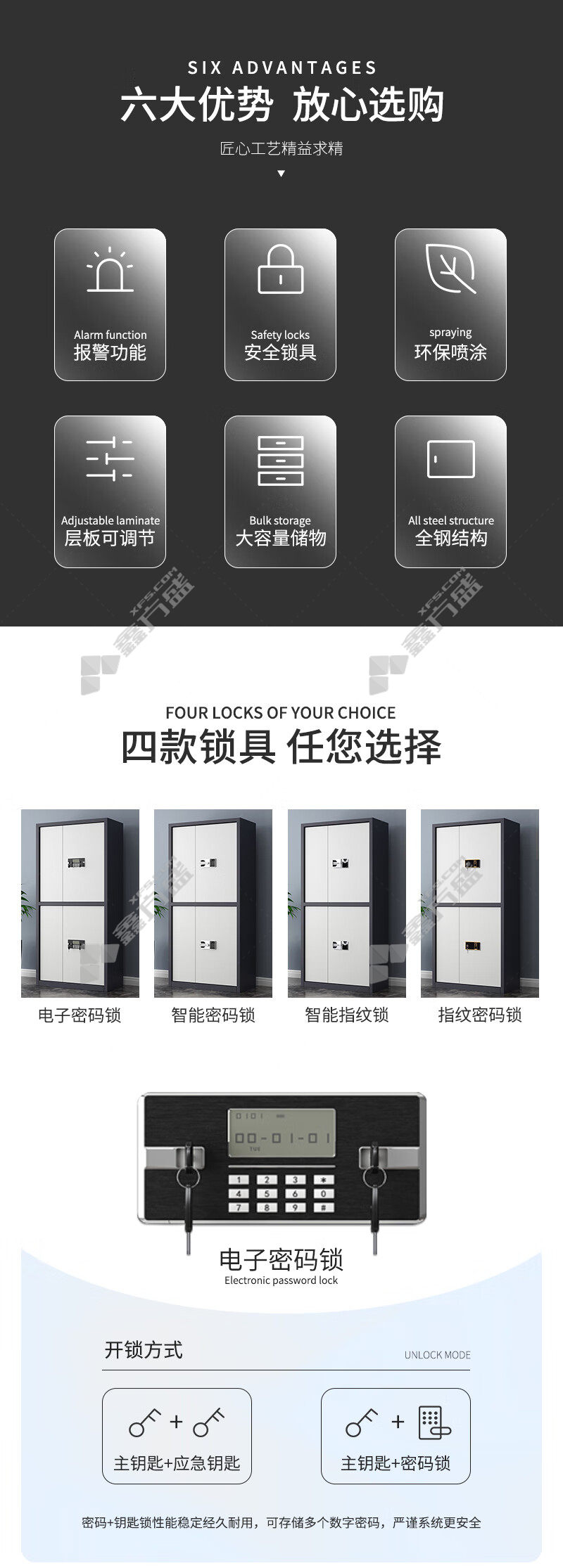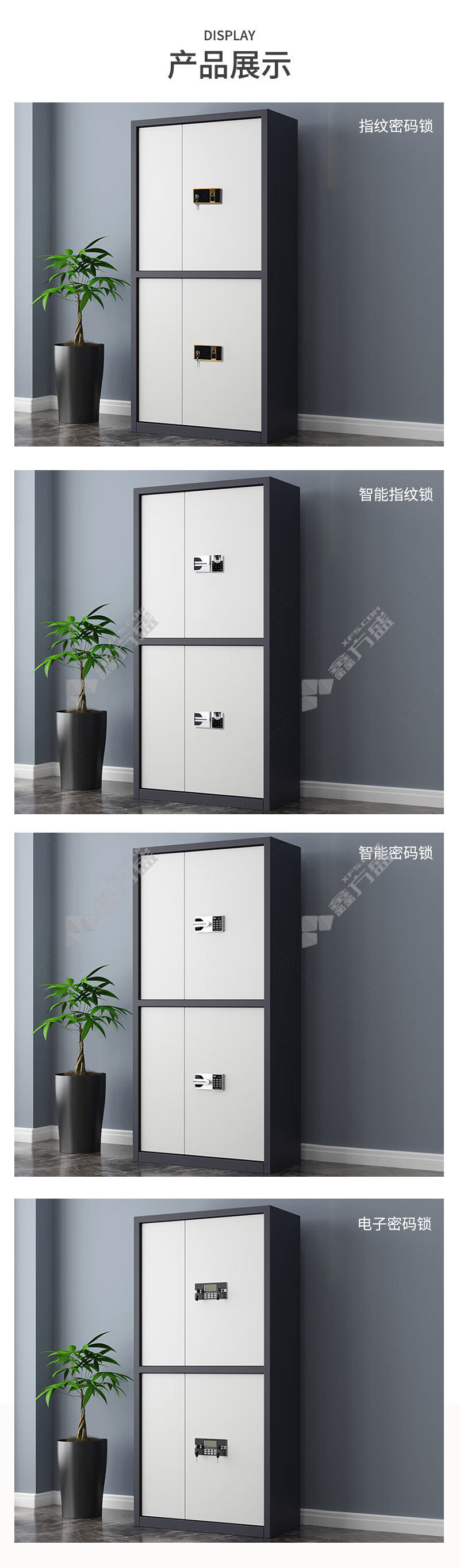 qinuo QNGCFO-01GZGW double section safe cabinet 900 *420*1850mm gray framed white door no specification