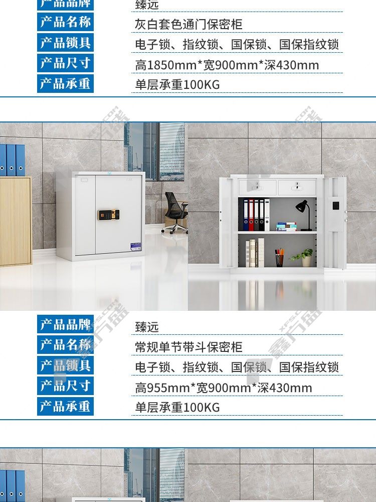 zhenyuan ZY-BMG-001 filing cabinet with drawer fingerprint lock W900*D430*1850mm off-white no specification