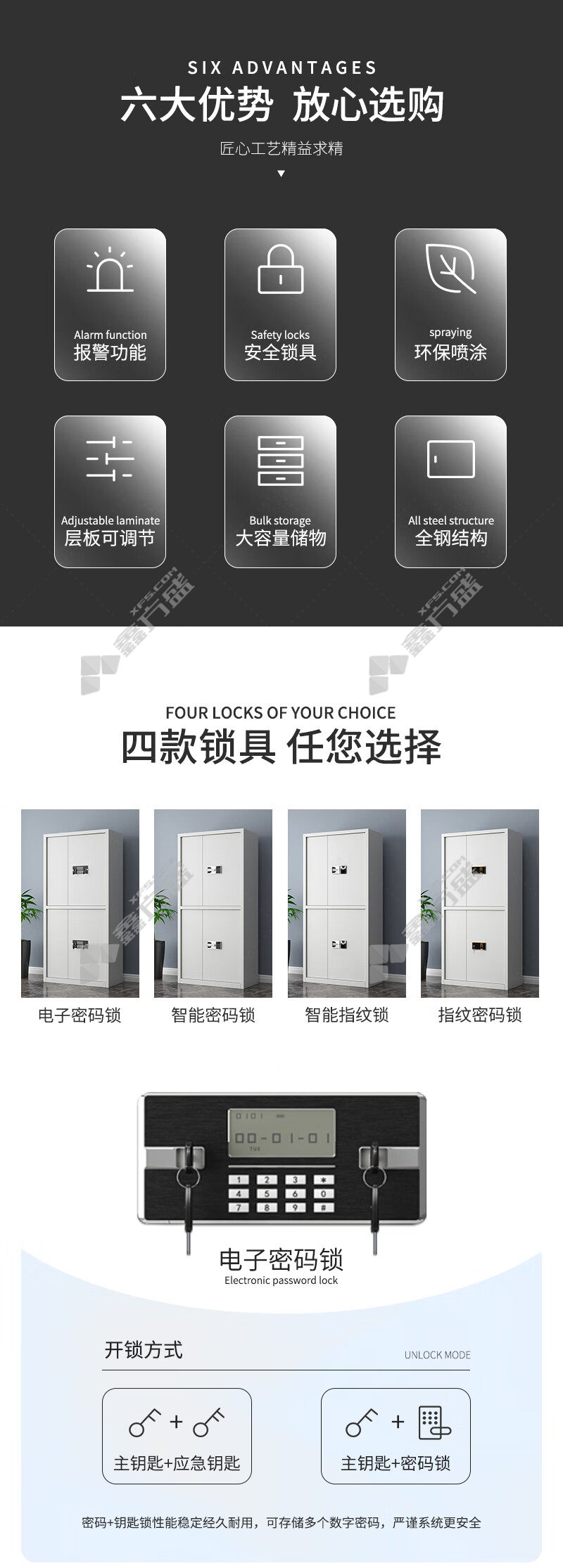 qinuo QNGCFO-01GZW double section safe cabinet QNGCFO-01GZW 900*420*1850mm white no specification