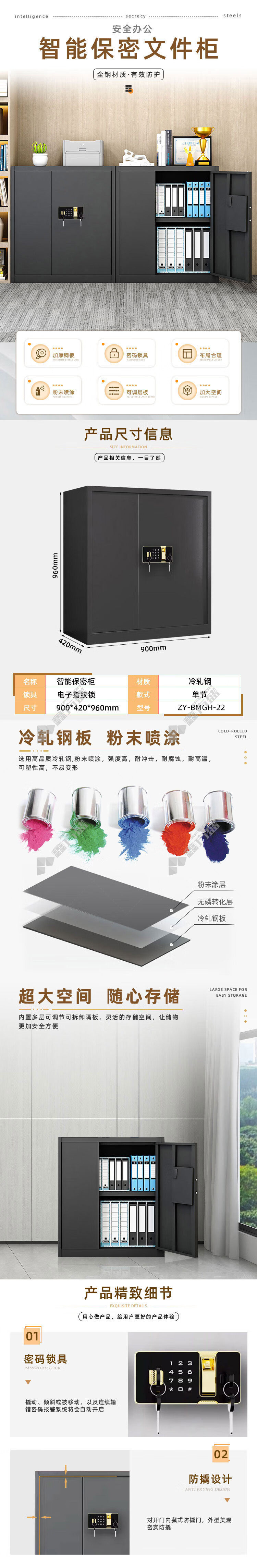 zhenyuan ZY-BMGH-22 single section fingerprint lock safe cabinet without bucket W900*D420*H960mm black no specification