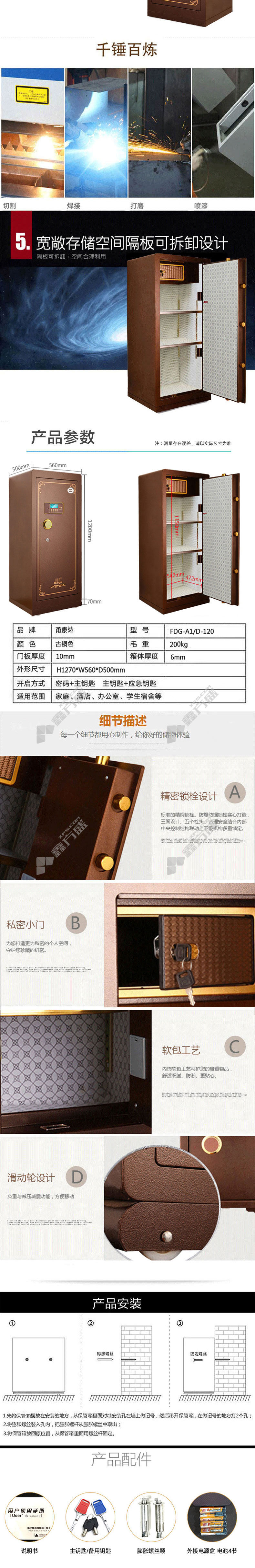 yongkanda FDG-A1/D-120 electronic password safe H1270*W560*D500mm bronze no specification